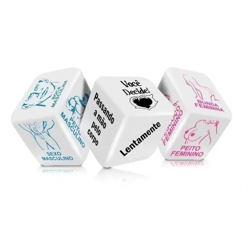 Os outros dois dados apresentam diferentes desenhos de partes do corpo feminino e masculino. A combinação dos resultados dos dados cria uma experiência única, onde a sorte determina o próximo passo. É uma forma divertida de explorar o corpo do parceiro e descobrir novas maneiras de se conectar.